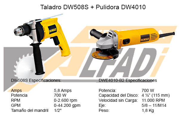 La pareja ideal para sus trabajos en hogar o industria, no deje pasar esta oportunidad. Herramientas DeWalt de alta calidad y tecnología.
